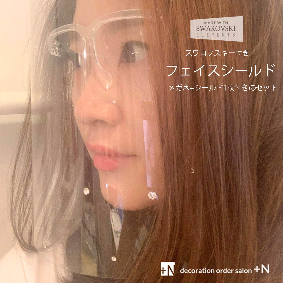 スワロフスキー付き フェイスシールド メガネタイプ 大人用 銀行 眼科 メガネ型 クリア フェイスシールド フェイスガード 飛沫防止 水洗いマスク フェイス シールド フェイスガード 1枚のお値段です。キラキラ 息がしやすいスワロフスキーマスク メガネ+シールド1枚付き