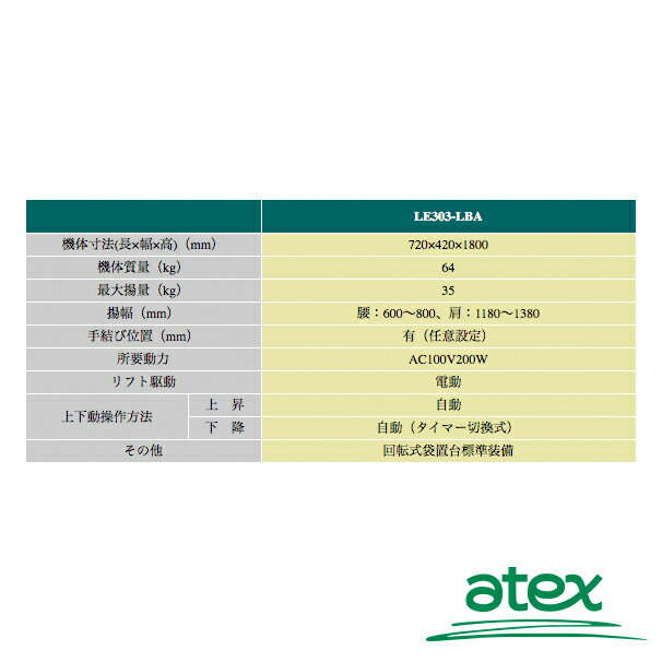 アテックス|atex 米袋リフタ らくして LE303-LBA(定置型)|法人様限定