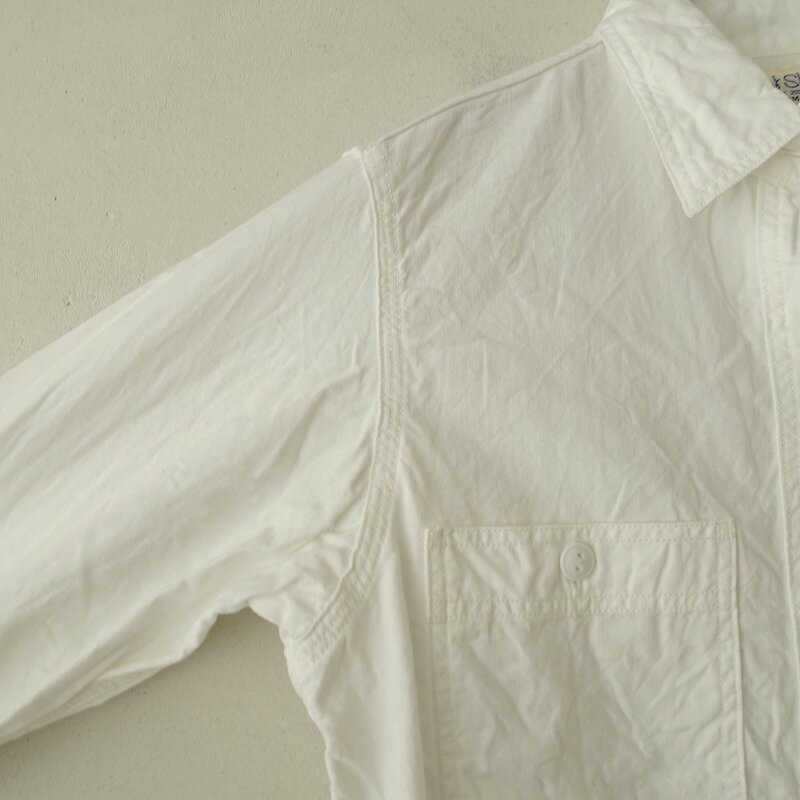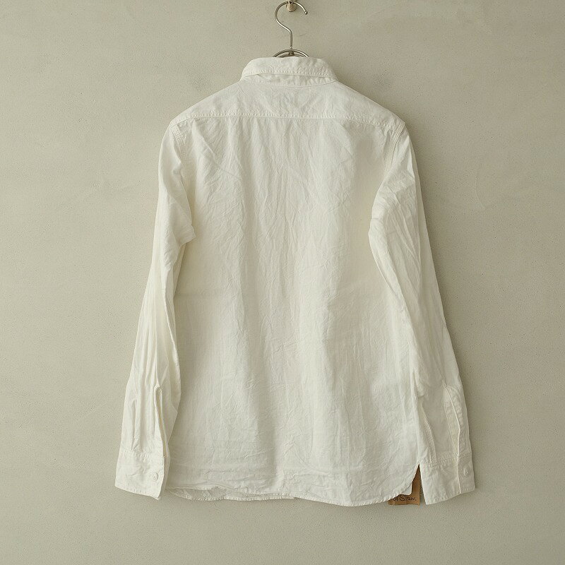表記サイズ:1/S 実寸サイズ:肩幅37cm, 身幅45cm, 袖丈57cm, 着丈63cm (多少の誤差はご了承ください) 素材:綿100% 日本製 デザイン:orslowのコットンホワイトシャンブレーシャツです。